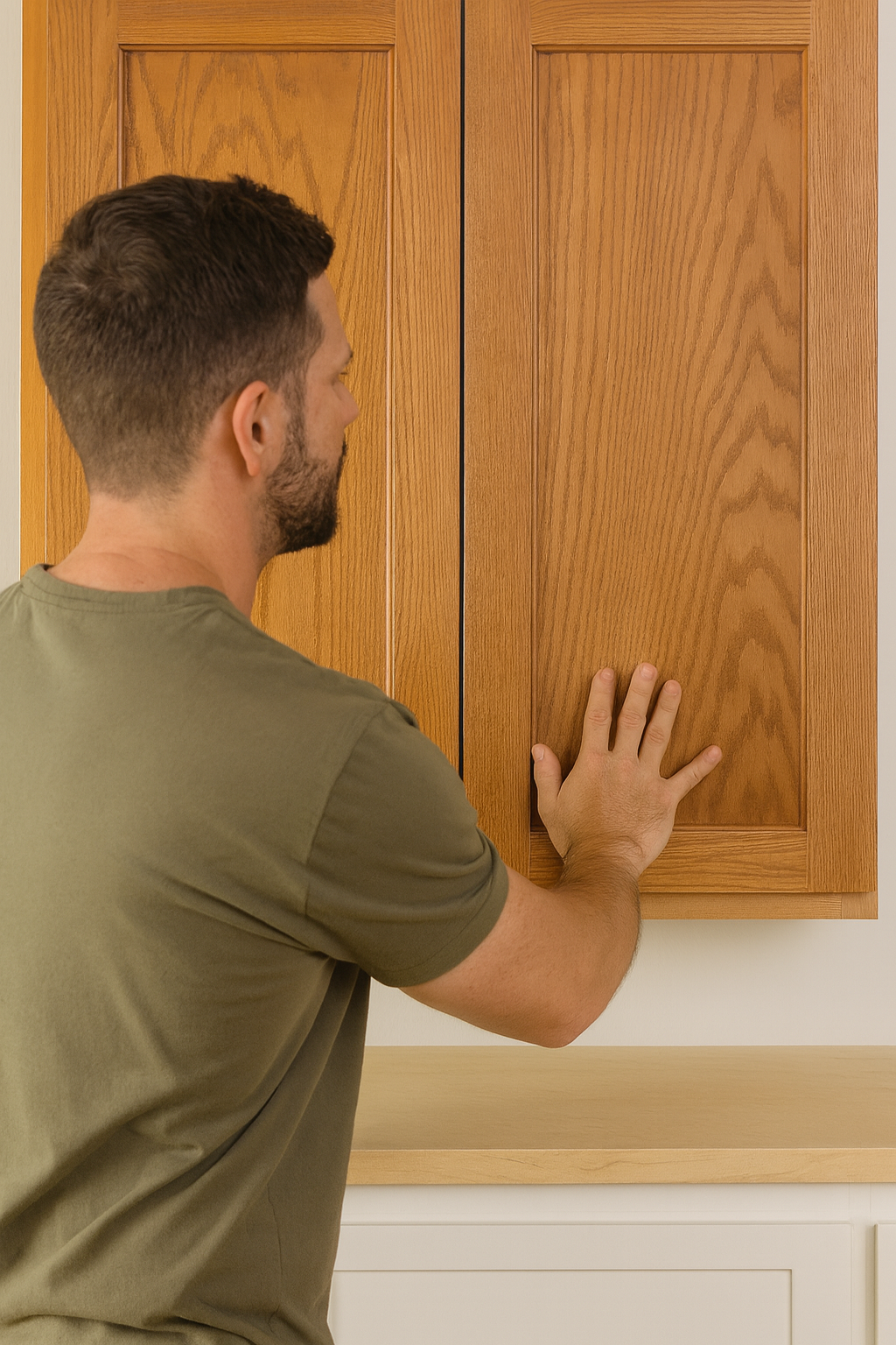 Schranktüren sehen einfach aus ... bis man versucht, sie gleichzeitig zu halten, auszurichten und anzuschrauben.