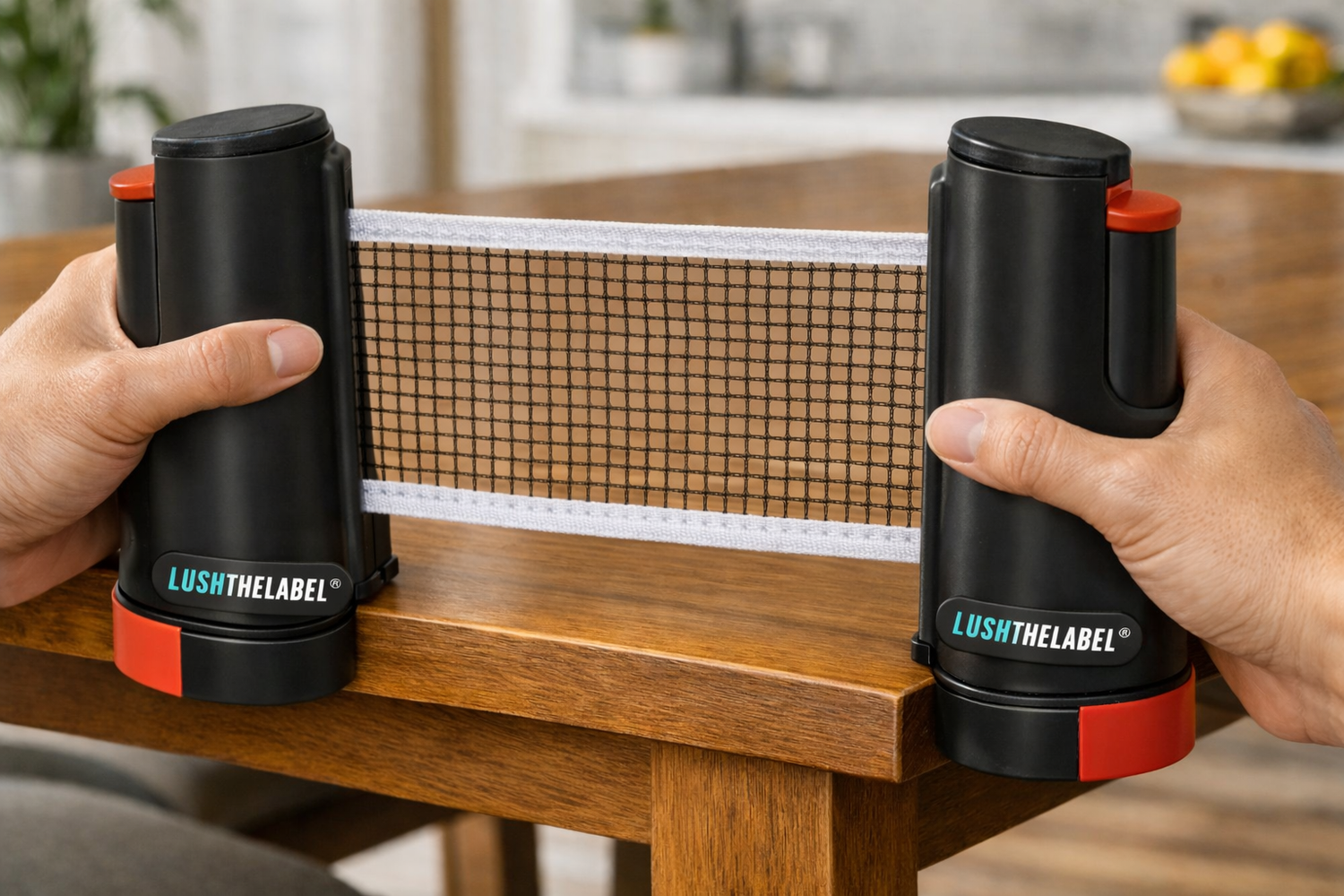 Mit dem Lush Tischtennis-Set befestigen Sie das Netz, schnappen sich einen Schläger und verwandeln jeden Tisch sofort in eine Pingpong-Spielfläche in der Küche, im Büro, im Ferienhaus, wo auch immer Sie möchten. Kein großer Tisch, kein Werkzeug, keine Ausreden.