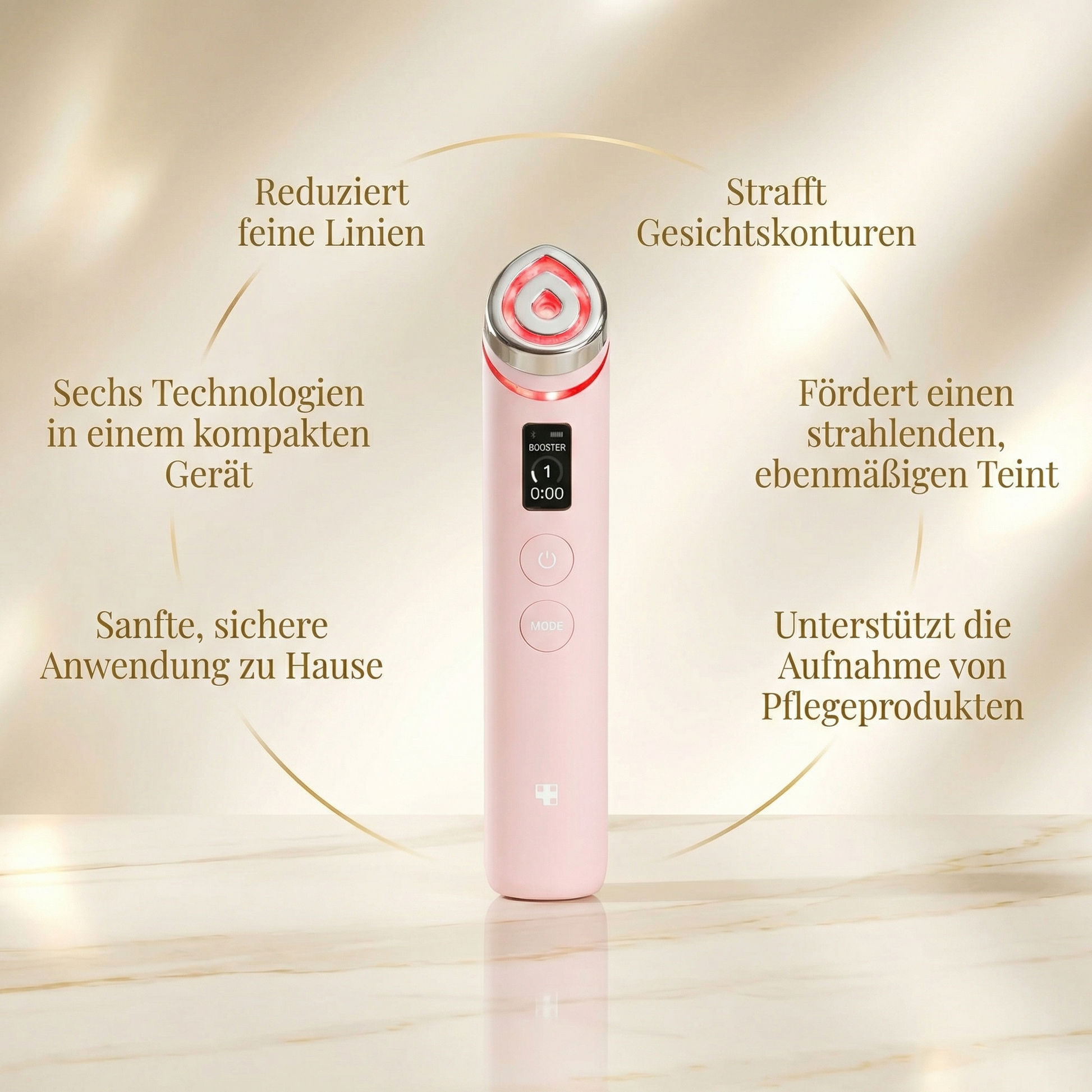 Der GlassGlow Pro nutzt moderne Rotlichttherapie und weitere Pflegefunktionen, die in der professionellen Hautpflege seit Jahren eingesetzt werden. So können Sie Ihre Haut zu Hause gezielt unterstützen und Ihr Hautbild sichtbar frischer und ebenmäßiger wirken lassen.