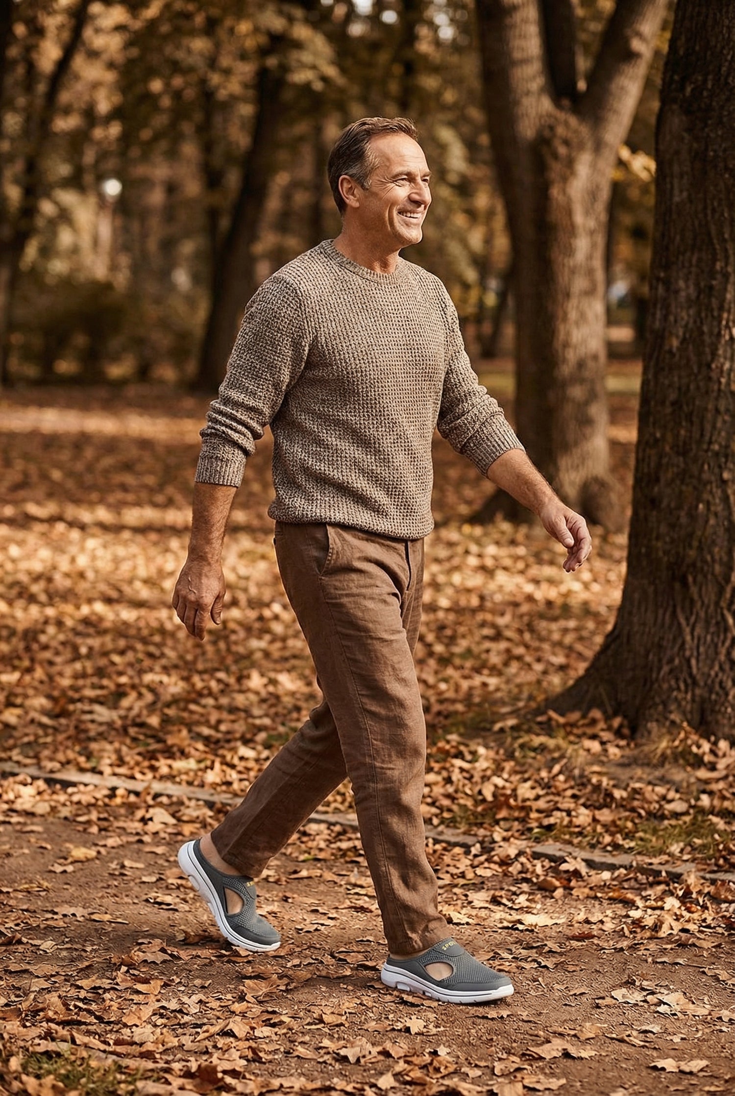 Gemacht für Männer, die leicht, bequem und stabil unterwegs sein wollen ohne schwere Schuhe. Das atmungsaktive Mesh hält die Füße angenehm kühl, während die ergonomische Einlegesohle spürbar entlastet. Ideal für Alltag, Spaziergänge und leichte Outdoor-Aktivitäten.