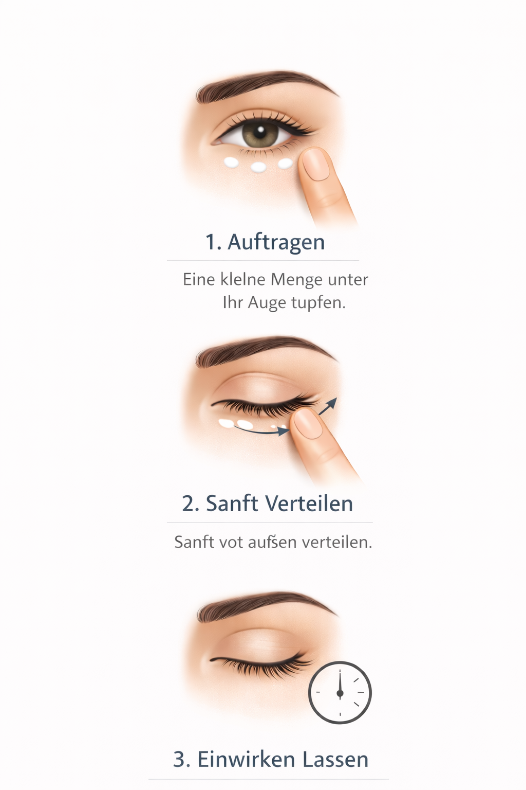 - Beginnen Sie mit sauberer, trockener Haut (keine reichhaltigen Cremes unter den Augen).