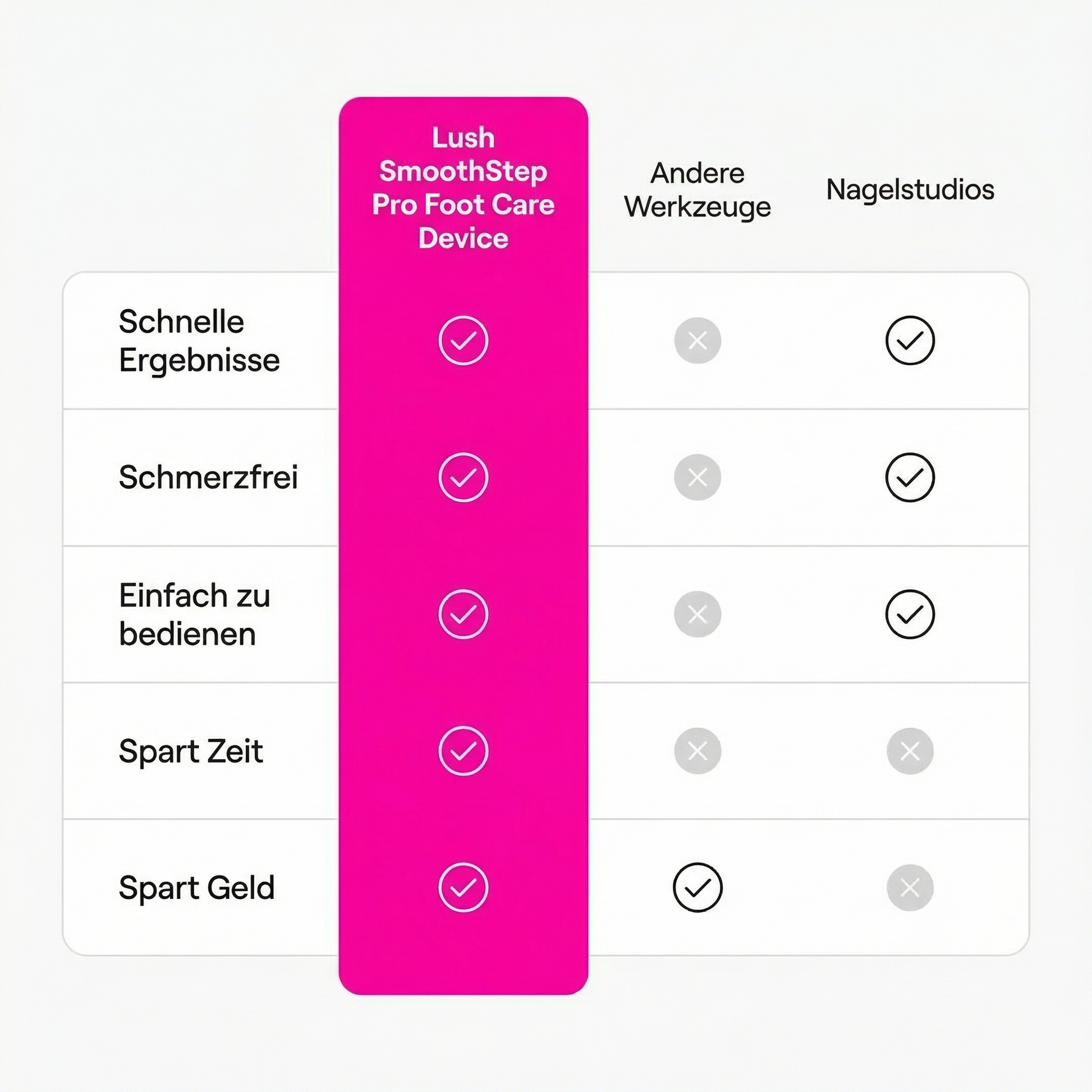 Weil Sie weiche, gepflegte Füße verdienen, ohne Schmerzen, ohne Aufwand und ohne teure Salontermine. SmoothStep Pro wurde für schnelle Ergebnisse, Komfort und eine sichtbar glattere Haut in nur wenigen Minuten entwickelt.