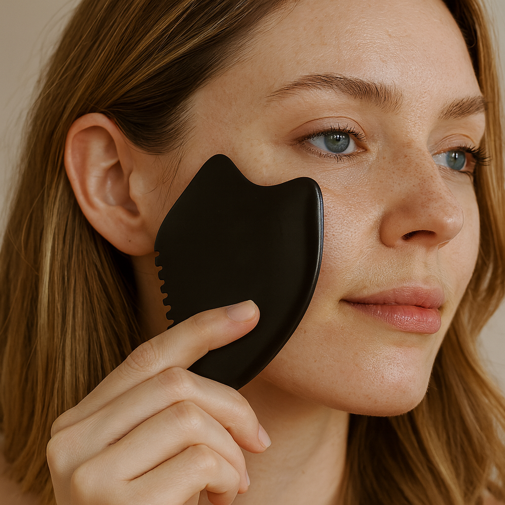 Entdecken Sie ein zeitloses Schönheitsritual, das Ihre Haut straffer, strahlender und mühelos jugendlich aussehen lässt. In nur wenigen Minuten pro Tag hilft Ihnen Ihr Gua Sha dabei, Schwellungen zu reduzieren, Ihre natürlichen Konturen sanft zu straffen und zu formen und Verspannungen im Gesicht und Nacken zu lösen.