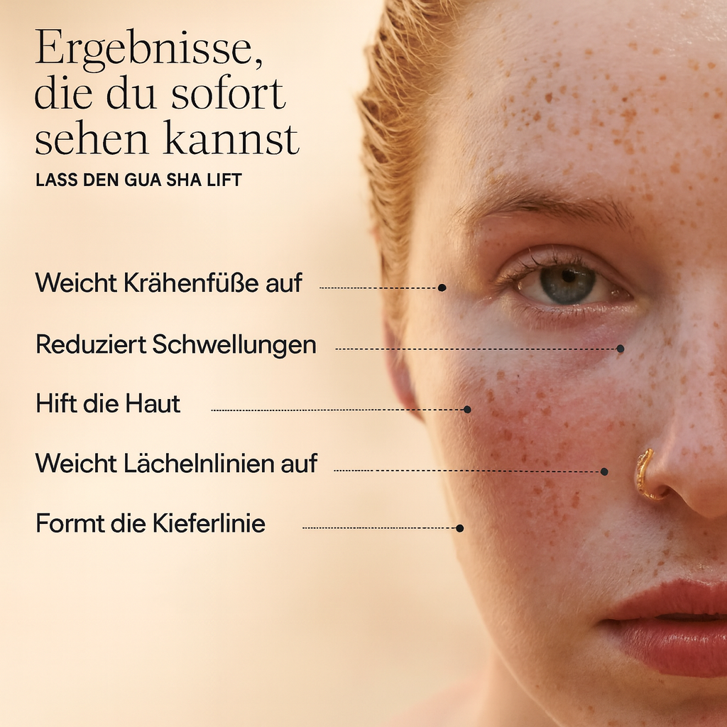 Erfahren Sie, warum Tausende von Frauen, die sich für Hautpflege begeistern, unser Gua Sha Werkzeug lieben. Es ist mehr als nur ein Beauty Accessoire, es ist ein tägliches Selbstpflege Ritual, ein kurzer Moment der Ruhe, der die Mikrozirkulation und die Lymphdrainage fördert. Nur wenige Minuten täglich helfen Ihrem Gesicht, erfrischt, belebt und natürlich strahlend auszusehen.