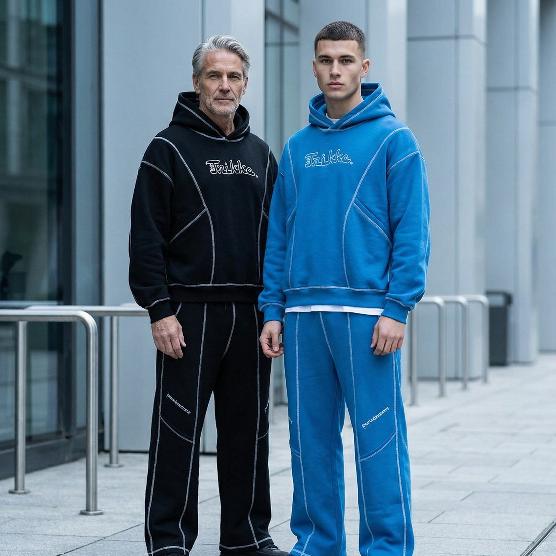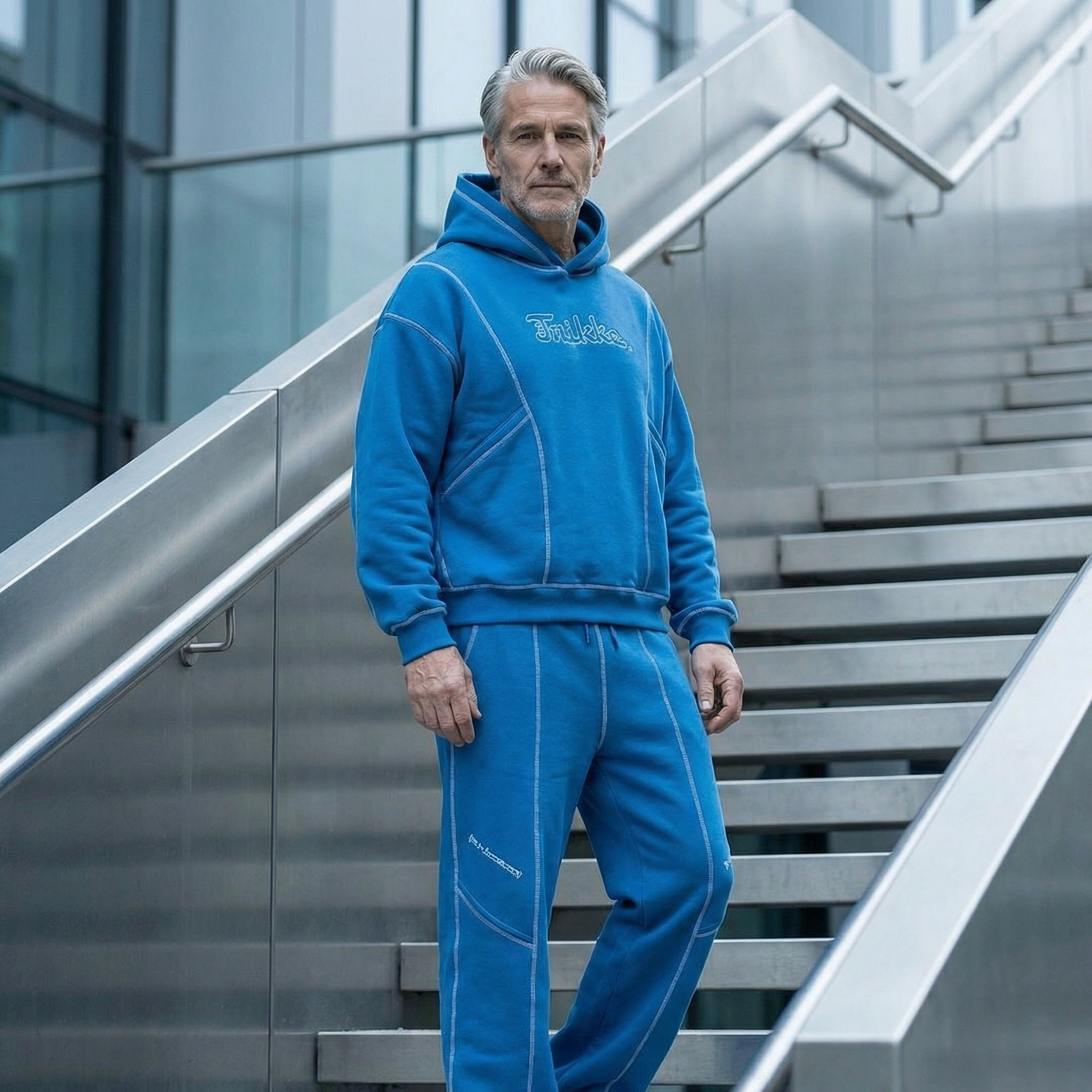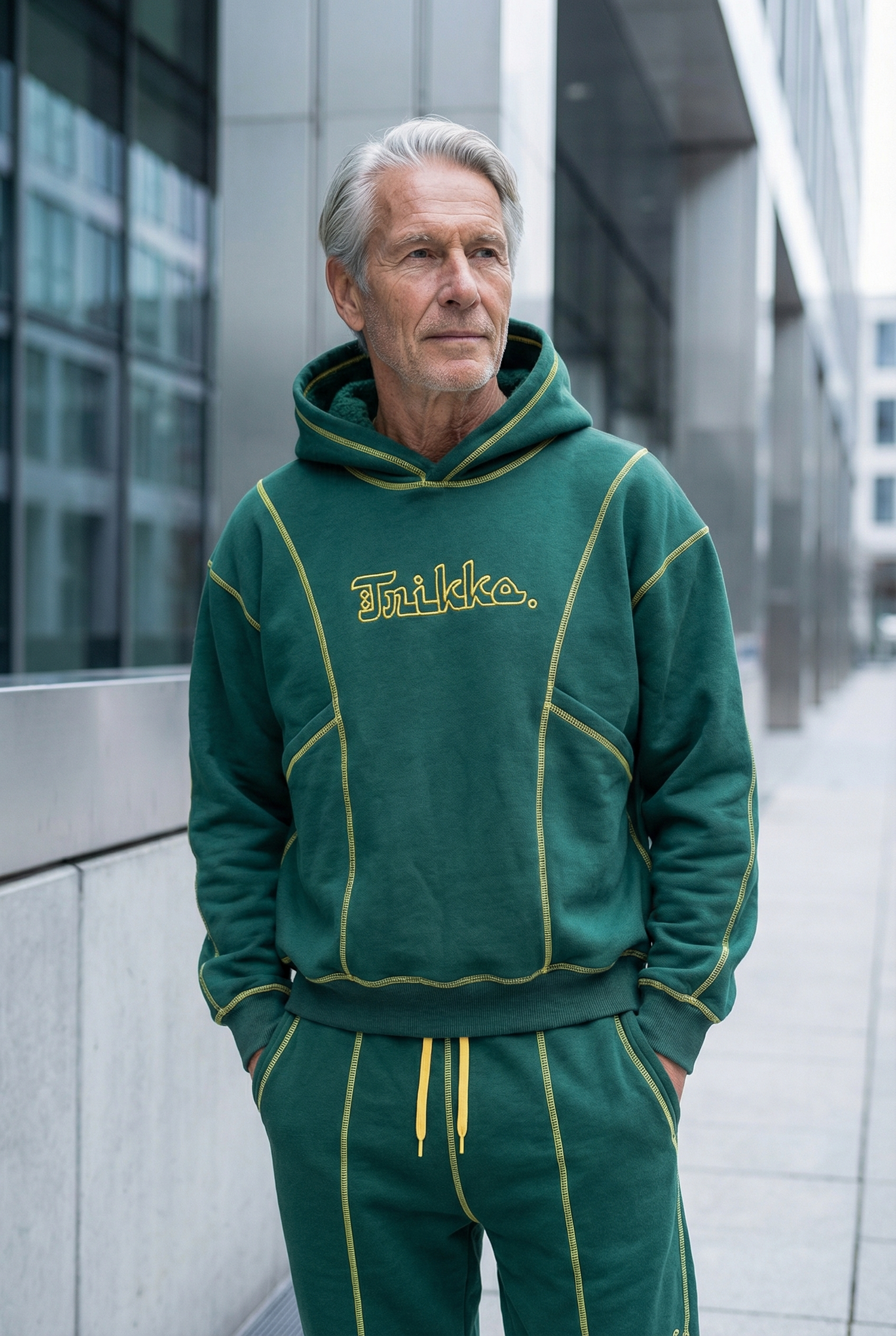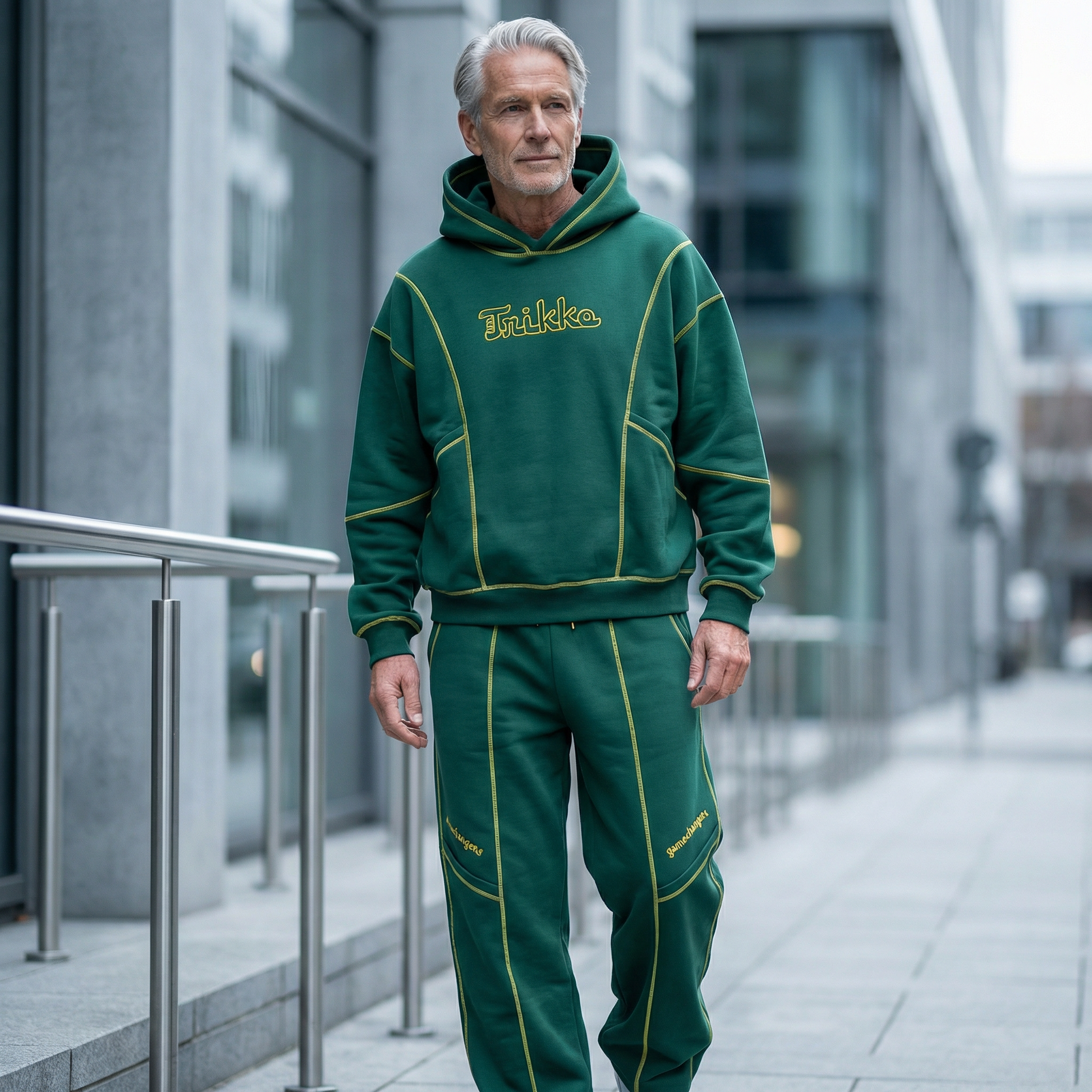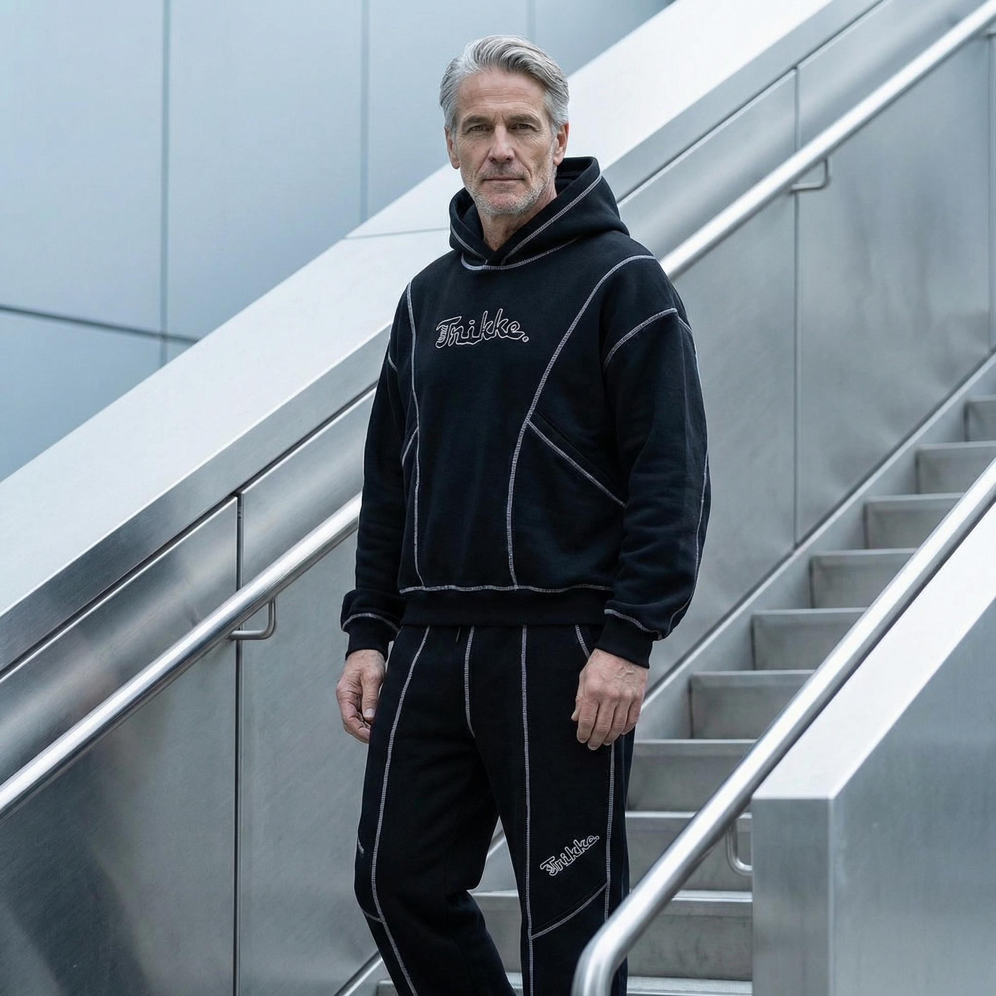 Das Premium Motion Set™ steht für Komfort und klare Optik. Schwerer, weicher Baumwollmix, lockerer Schnitt und markante Kontrastnähte sorgen für einen hochwertigen Look. Praktisch mit Kapuze und Kängurutasche, perfekt für jeden Tag.
