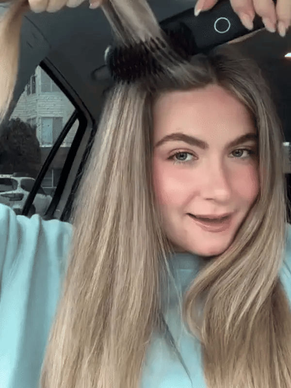 Unsere Tragbare Glättungsbürste schützt Ihr Haar dank fortschrittlicher Wärmefluss Technologie und verursacht 93 % weniger Schäden als herkömmliche Geräte. Glattes Haar, kein schlechtes Gewissen. 💜
